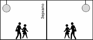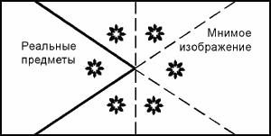 Итак, система зеркал, расположенных параллельно друг другу, должна сохраниться, чтобы, многократно отражая друг друга, создать “видимую” бесконечность. Но Клиент должен оказаться за пределами этой бесконечности, то есть, его нужно “вынести” из этой системы.