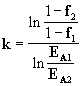 Поскольку в данном случае в исходной формуле используется 2 коэффициента, то для их определения необходимо найти уже не 1, а 2 точки зависимости f(EA), а затем решить нелинейную систему 2-х уравнений: