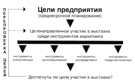 реклама предприятия, перепроверка собственных позиций на рынке и конкурентоспособности, налаживание кооперации и т.д. Найти для этого индикаторы успеха значительно сложнее. Можно задать и противоположный вопрос: сколько бы стоило достижение этих целей в другом случае и, соответственно, возможно ли вообще достижение их другими средствами?