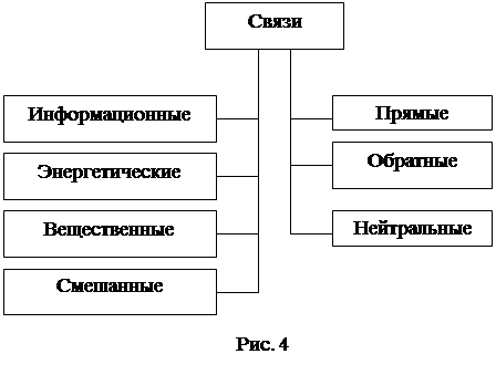называются подсистемы (элементы), осуществляющие непосредственное взаимодействие между другими подсистемами (элементами) и не принимающие решений. Связи переносят компоненты метаболизма из одной пространственной области в другую. При этом возможны некоторые преобразования этих компонент. Связи подразделяются на прямые и обратные.