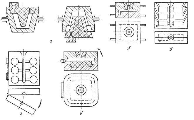 Разновидности кокилей показаны на рисунке 2.