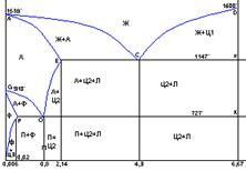 Ледебурит (смесь Ц+А)-эвтектика (НВ=700, хрупкий), ниже 727 Л=П+Ц, т.к. А сущ. ниже 727 не может.