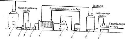 Мал. 61. Схема технологічної лінії виробництва сметанирезервуарпым засобом:
