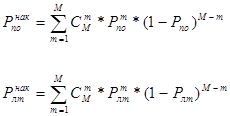 2. Рассчитать вероятности правильного обнаружения ( ) и ложной тревоги ( ), обеспечиваемые при совместном когерентном и некогерентном накоплении сигнала. При этом использовать формулу Бернулли: