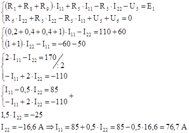 Решим систему этих уравнений и определим контурные токи: