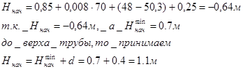 Так как глубина заложения труб в точке 5 превысила 7м, то в этой точке ставим районную насосную станцию и определяем новую Ннач