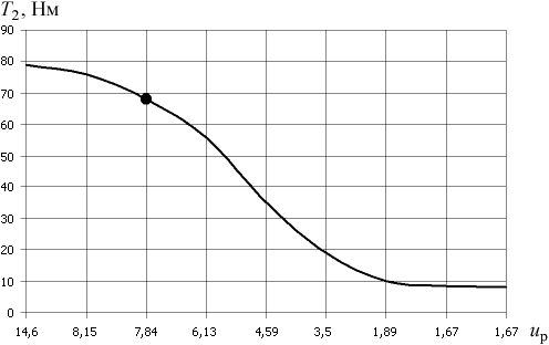 Рис. 5. Зависимость крутящего момента на выходном валу T2