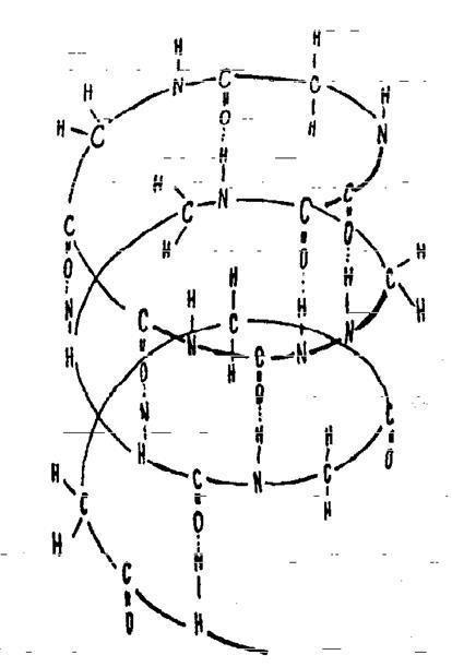 — способ скручивания полипептидной цепи в пространстве (за счет водородной связи между водородом амидной группы — NH — и карбонильной группы — СО —, которые разделены четырьмя аминокислотными фрагментами). Вторичной структурой обладает большая часть белков, правда, не всегда на всем протяжении полипептидной цепи. В одном витке спирали обычно со- держится 3,6 аминокислотных остатка, шаг спирали – 0,544 нм. 3.Третичная структура белка