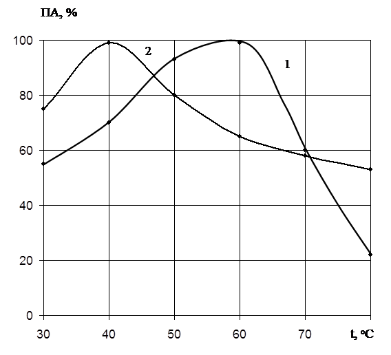3. Выяснены температурные оптимумы протеолитических ферментов – для протеиназы I – 60, а для протеиназы II – 400