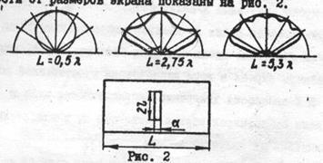 Следовательно, будут направления, в которых диафрагмированные волн будут ослаблять поле щели, а также направления, в которых поле щели будет усилено. Таким образом, диаграмма направленности в плоскости Е от щели, прорезанной в экране ограниченных размеров, или в волноводе, будет иметь “волнистый характер”. Примеры диаграмм направленности волноводно-щелевых антенн в зависимости от размеров экрана показаны на рис.2.