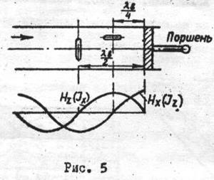 Чтобы продольная возбуждалась с максимальной интенсивностью, ее центр надо поместить в пучность , т.е. расстояние между поршнем и щелью - z - должно равняться нечетному числу / 4. Для максимального возбуждения поперечной щели ее следует помещать в пучность , т.е. на расстоянии равном четному числу / 2 от поршня.