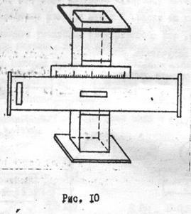 Структурная схема установки для измерения эквивалентной проводимости, сопротивления и характеристики направленности щелей приведены на рис.9. Полуволновые резонансные излучатели прорезаны в металлической пластине, которая может перемещаться относительно оси волновода (рис.10). Величина смещения щели ( х ) отсчитывается по шкале. В одном крайнем положении волновод полностью закрыт, что соответствует короткому замыканию исследуемого щелевого излучателя.