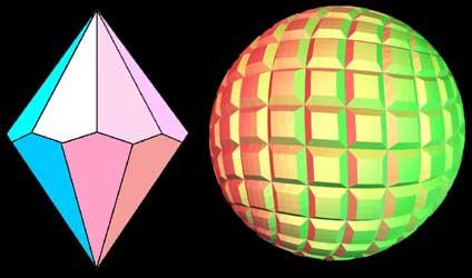 A - в ортогональной проекции; B - в шестигранной проекции.