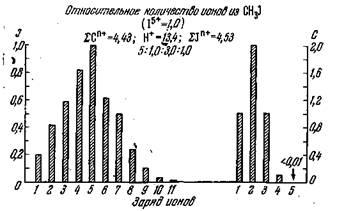 Рис. .1. Спектр зарядов ионов при разрушении йодистого метила [25].