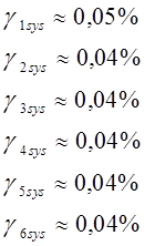 К случайной мультипликативной погрешности можно также отнести методическую погрешность, которая возникает ввиду конечного числа выборок. Длительность измерительного цикла прибора - 40 секунд. Частота появления выделенной строки - 25 Гц. Следовательно количество выборок 1000. Принимаем, что шум распределен по нормальному закону, пик-фактор шума 3.