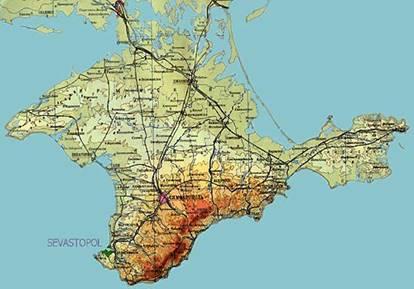 С). Осадков в западной части гор около 1000-1200 мм. в год, на востоке полуострова 500-700 мм., на севере 300-500мм. в год. Реки Крыма маловодны; важнейшие – Черная, Бельбек, Кача, Альма, Салгир. На реке Салгир построено Симферополское водохранилище. Имеется несколько крупных лиманских озер: Красное, Старое, Сакское, Акташское, Тобечикское и д.р. Почвы в северной части Крыма каштановые, вдоль Сиваша – каштановые в комплексе с солонцами и солончаками, в центральной части преимущественно южные черноземы, в предгорьях и горах выщелоченные черноземы, бурые горно-лесные, на яйлах (плоских вершинах Главной гряды Крымских гор) черноземовидные горно-луговые. Поверхность северной части в основном распахана. На небольших участках сохранилась степная растительность. В горах (особенно на северных склонах) леса: дубовые, буковые, буково-грабовые, местами сосновые. На южном берегу Крыма растительность средиземноморского типа. Многочисленные парки из декоративных деревьев и кустарников, сады, виноградники, табачные плантации. На южном берегу расположены оновные города и курорты: Ялта, Мисхор, Алупка, Симеиз, Гурзуф, Алушта и д.р. Главные города: Симферополь, Севастополь, Керчь.