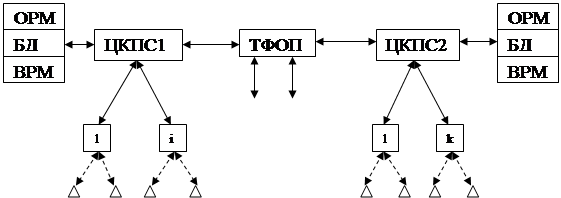 При децентрализованном управлении каждый ЦКПС имеет свою базу данных, включающую в себя ОРМ и ВРМ, а также блоки идентификации и аутентификации.