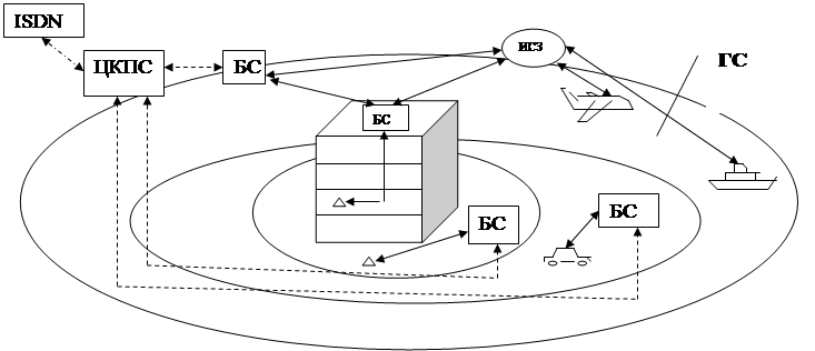 БС – базовая станция; ЦКПС – центр коммутации подвижной связи; ТФОП – телефонная сеть общего пользования.
