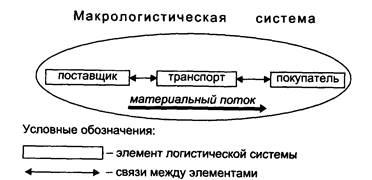 Макрологистическая система — это крупная система управления материальными потоками, охватывающая предприятия и организации промышленности, посреднические, торговые и транспортные организации различных ведомств, расположенных в разных регионах страны или в разных странах. Макрологистическая система представляет собой определенную инфраструктуру экономики региона, страны или группы стран.