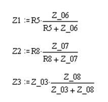 Пары сопротивлений R5 с Z_06 , R8 с Z_07 , Z_08 с Z_03 соединены последовательно, следовательно: