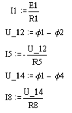 I1, I2, I3, I4, I5, I6, I7, I8, I9 – токи в соответствующих участках цепи.