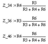 Треугольник с сопротивлениями R3, R4, R6 преобразуем в треугольник: