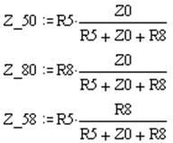 Полученный треугольник с сопротивлениями R5, R8, Z0 преобразуем в звезду: a b