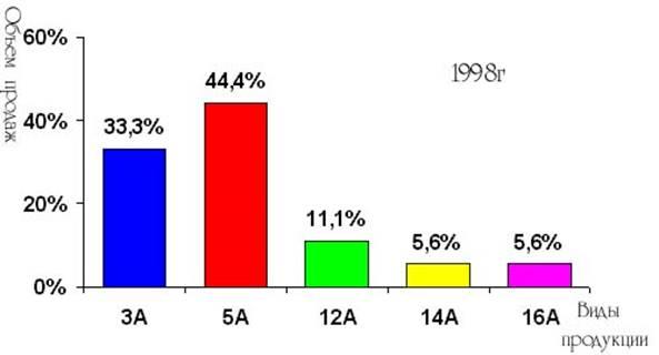 Объем продаж по видам продукции за 1996-1998гг. * Таблица 1