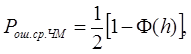 Вероятность ошибки на выходе приемника при применении согласованного фильтра определим по формуле:Сигналы могут приниматься асинхронным и синхронным способом.