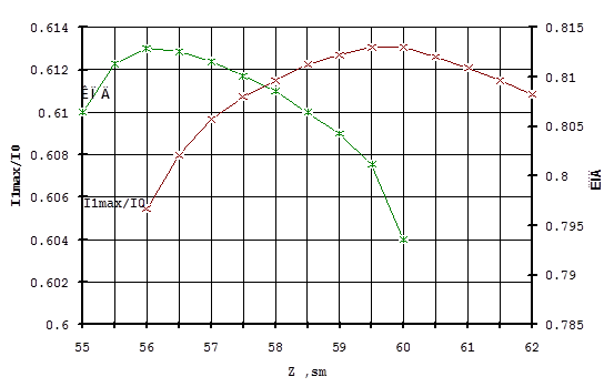 =0.65. Для двухрезонаторного клистрона с тремя зазорами это является хорошим результатом. Это на 30-35% больше, чем у приборов выпускаемых промышленностью. Вместе с тем еще остаются возможности для последующего повышения КПД.