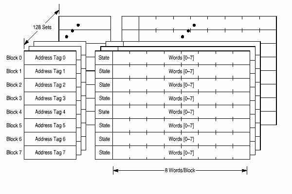 - Четыре блока кэш-памяти данных - максимальный объем кэш-памяти первого уровня составляет 256 Кбайт. Каждый блок имеет два порта. Устройство реализует также ряд функций обнаружения и коррекции ошибок при взаимодействии с системой памяти;