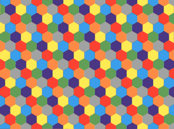 Рис.4. Понятия теории Рамсея приложимы к геометрическим задачам вроде этой головоломки о шестиугольниках. Если длины всех сторон шестиугольников равны 0,45 единицы (единица длины может быть произвольной), то две точки внутри шестиугольника отстоят друг от друга самое большее на 0,9 единицы. Каждый шестиугольник окрашивается одним из семи цветов, так, что никакие два шестиугольника одного цвета не отстоят друг от друга меньше чем на 1,19 единицы. Никакие две точки одного цвета не находятся одна от другой на расстоянии, в точности равном единице. Пока что никто не смог определить, можно ли раскрасить плоскость шестью красками так, чтобы никакие две точки одного цвета не находились в точности на расстоянии одной единицы друг от друга.