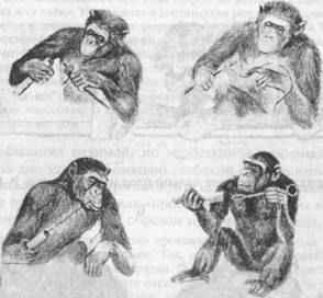 Н. Н. Ладыгина-Котс (1963) писала, что «обезьяны имеют элементарное конкретное образное мышление (интеллект), способны к элементарной абстракции (in concrete) и обобщению. И эти черты приближают их психику к человеческой». При этом она подчеркивала, что «...их интеллект качественно, принципиально отличен от понятийного мышления человека, имеющего язык, оперирование словами как сигналами сигналов, системой кодов, в то время как звуки обезьян, хотя и чрезвычайно многообразны, но выражают лишь их эмоциональное состояние и не имеют направленного характера. Обезьяны, как и все другие животные, обладают лишь первой сигнальной системой действительности».