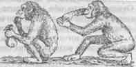 Рис. 4. Использование знаков амслен в общении шимпанзе Бруно и Буи между собой. Буи изображает знак «щекотать», возможно, для того, чтобы отвлечь Бруно от лакомства и самому его съесть (рисунок Т. Никитиной).