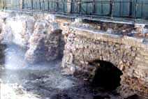 Зондаж в южной апсиде верхнего храма - на западном фасаде - следы примыкания свода галереи;
