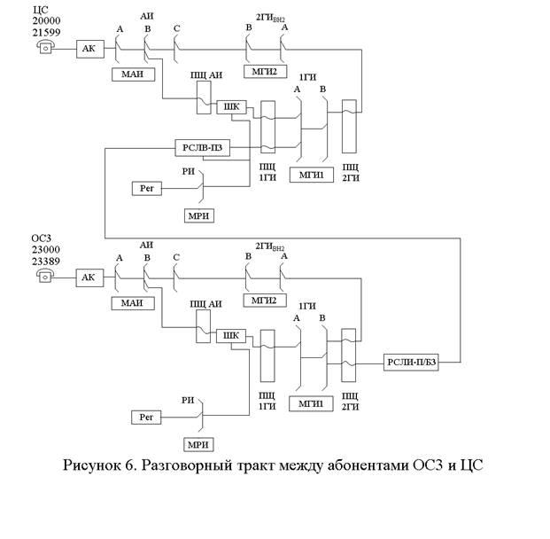 6. Описание разговорного тракта между абонентами ОС3 и ЦС (схема разго-