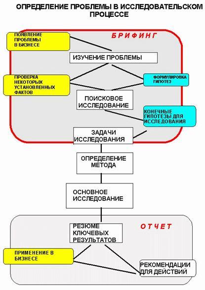Дисциплина исследовательского брифинга помогает компании заказчика оптимизировать свои представления о проблеме и процессе ее решения. Хорошо сформулированная проблема уже наполовину решена, однако иногда трудно бывает ее точно сформулировать. Неблагоприятное событие (например, снижение продаж) может иметь несколько возможных причин. В начале нужно хорошо продумать или даже проделать некоторое поисковое исследование, чтобы быть в состоянии перечислить все возможные гипотезы, объясняющие это событие.