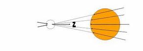 Понятно, что в этом случае зависимость гравитационной силы от расстояния для достаточно малых углов (меньших 0,1 рад, под которыми обычно тяготеющая масса видна «с точки зрения» планет), попрежнему с высокой точностью обратно пропорциональна квадрату расстояния (пропорциональна величине телесного угла, под которым виден диск непрозрачной массы. (Что именно происходит при бОльших углах и меньших расстояниях будет рассмотрено впоследствии). Но пока мы приходим к неожиданному выводу. Оказывается, если плотность массы тяготеющего тела больше некоторой критической, и она начинает поглощать практически весь гравитонный поток, то при одной и той же гравитационной силе плотность тела (а, значит, и его масса) может быть сколь угодно больше этой критической. Увеличение массы выше определенного предела не влияет более на силу гравитационного воздействия этой массы, создаваемую разностью гравитонных потоков. Экранировка гравитонного потока определяется полным поглощением его частью небесной сферы, которую закрывает непрозрачная для гравитонов масса вещества. Из этого следует, что масса Солнца, которая, естественно, определяется по силе воздействия на планеты (и, прежде всего, на Землю с ее известной массой, через которую и была вычислена масса Солнца в свое время), на самом деле может быть значительно бОльшей, если принять во внимание результаты измерений при солнечном затмении, и возможность наличия в центре Солнца большой зоны с полным поглощением гравитонов.