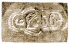 Так, на рис.5, изображено поддельное клеймо по типу рис.1, с совершенно неудавшейся уродливой головкой. Еще хуже подделка на рис.6, по типу рис.3; в наляпанном кусочке рельефного металла в левой части штампа трудно даже уловить какое-либо сходство с человеческою головой. Тем не менее, подобные подделки часто и легко сбываются в продаже, благодаря тому, что рисунки пунсонов редко кому известны, и рассмотреть их можно только в лупу.