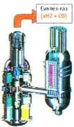 К настоящему времени разработан проект модульного гелиевого реактора для генерации электричества (с КПД ~ 50%) с использованием прямого газотурбинного цикла. Энергетическая установка ГТ-МГР состоит из двух связанных воедино блоков: модульного высокотемпературного гелиевого реактора (МГР) и газотурбинного преобразователя энергии прямого цикла (ГТ). Работы находятся на стадии технического проектирования с экспериментально-стендовой отработкой ключевых технологий: топливо и система преобразования энергии. В настоящее время проводится оценка технологического применения этого проекта для производства водорода с использованием термохимических циклов, в том числе и на базе ПКМ (см. рис. 1, 2). Создание такого тандема (ВТГР-ПКМ) открывает путь широкому применению ядерной энергии в энергоемкой промышленности: крупнотоннажной химии, металлургии, а также позволяет путем выработки вторичного энергоносителя (чистого водорода или его смеси с СО) создавать ядерные энерго-технологические комплексы для регионального теплоэнергоснабжения с поставкой топлива для транспорта и низкопотенциального тепла для коммунально-бытовых нужд и коммерческого сектора.