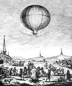 5 июня 1783 г. во французском городе Виделон-лез-Анноне братья Жозеф Мишель и Жак Этьен Монгольфье демонстрировали полет построенного ими шара. Оболочка объемом около 600 куб. м. покоилась на решетчатой раме, сплетенной из лозы. Рама устанавливалась на подмостки, под которыми был разведен костер из мокрой соломы. Горячий влажный воздух наполнял оболочку. После того, как отпустили удерживающие ее веревки, она устремилась вверх. Полет продолжался всего 10 минут. За это время шар пролетел два с небольшим километра.