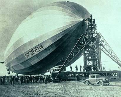 Дирижабль "Граф Цеппелин" LZ-127 летал с крейсерной скоростью 109 км./ч на высоте ок. 244 м. Океан пересекал менее чем за два дня. В средней секции дирижабля пассажирская кабина и комната отдыха. Среди характеристик роскоши, представлявшейся 24 пассажирам, была прекрасная еда и вина ресторана, соответствовавшего пятизвездочному отелю. Персонал потворствовал любым желаниям. Чтобы обеспечить музыкой во время еды и вечером во время танцев, был даже рояль, сделанный из алюминия.