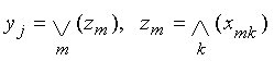 где каждое уравнение является ДНФ. Если задается вектор х, то вычисляется вектор у, т.е. функция, соответствующая системе ДНФ. Если же вектор у задается, а вектор х вычисляется, то схема АД вычисляет функцию, обратную системе ДНФ v обратную ДНФ.