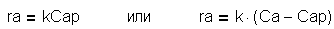 - концентрации компонента А в газовом потоке и его равновесная на поверхности частицы катализатора соответственно.