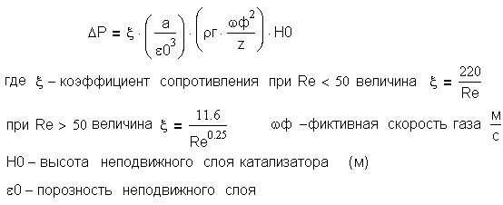 )]. Значение ВЕП и N0 можно определить по формулам. Гидравлическое сопротивление реактора рассчитывают по разным формулам в зависимости от его конструкции. Для реактора с неподвижным слоем катализатора