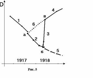 На рис. 6 приведена принципиальная бифуркационная схема, построенная без учета интервенции (1919-1921г.г.) и ВОВ (1941-1945), где Д – доходы трудящихся, линии: