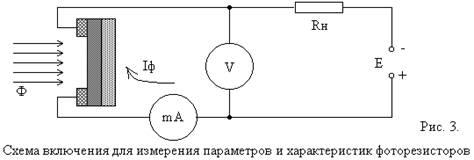 Конструкция и схема включения фоторезистора. Темновой и световой ток