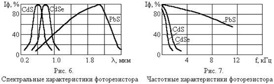 . В инфракрасной области могут быть использованы фоторезисторы на основе PbS, PbSe, PbTe, InSb, в области видимого света и ближнего ультрафиолета – CdS.