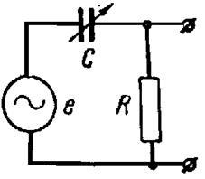 На рис. 6 приведен другой пример использования параметрического датчика. В этом случае с изменением значения емкости С меняется ток через нее, а следовательно, и напряжение на выходе системы, падающее на сопротивлении нагрузки Rн, которое и является выходной величиной.