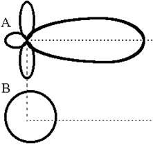Предложим, что рядом расположены направленная А и изотропная В антенны. На рис. 2 схематически диаграммы направленности обеих антенн. Изотропная антенна, как и следовало ожидать, обладает круговой диаграммой направленности